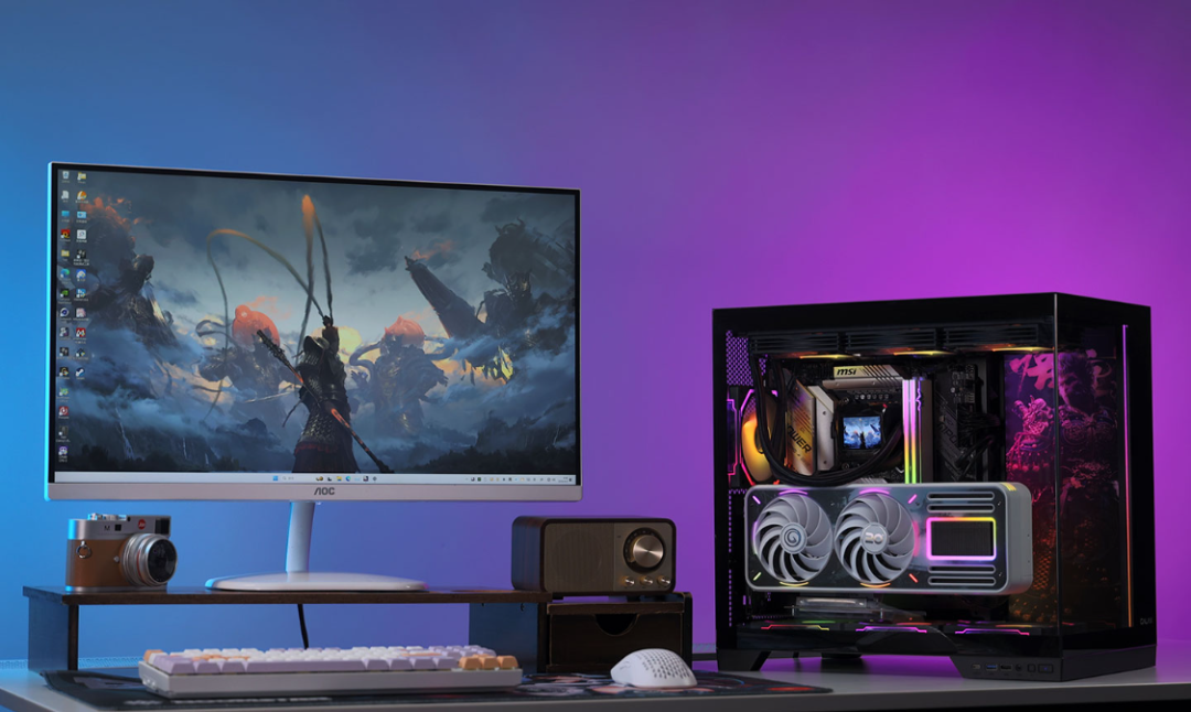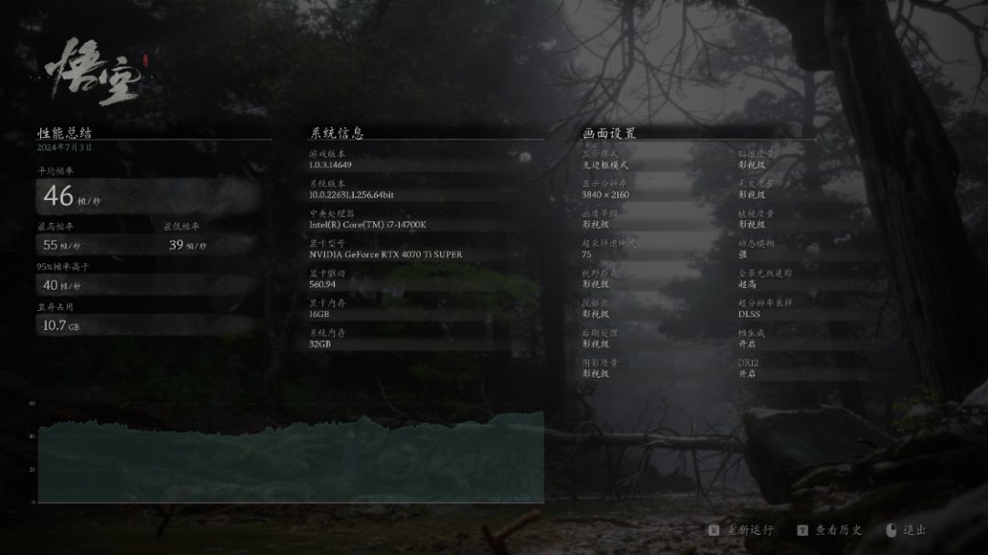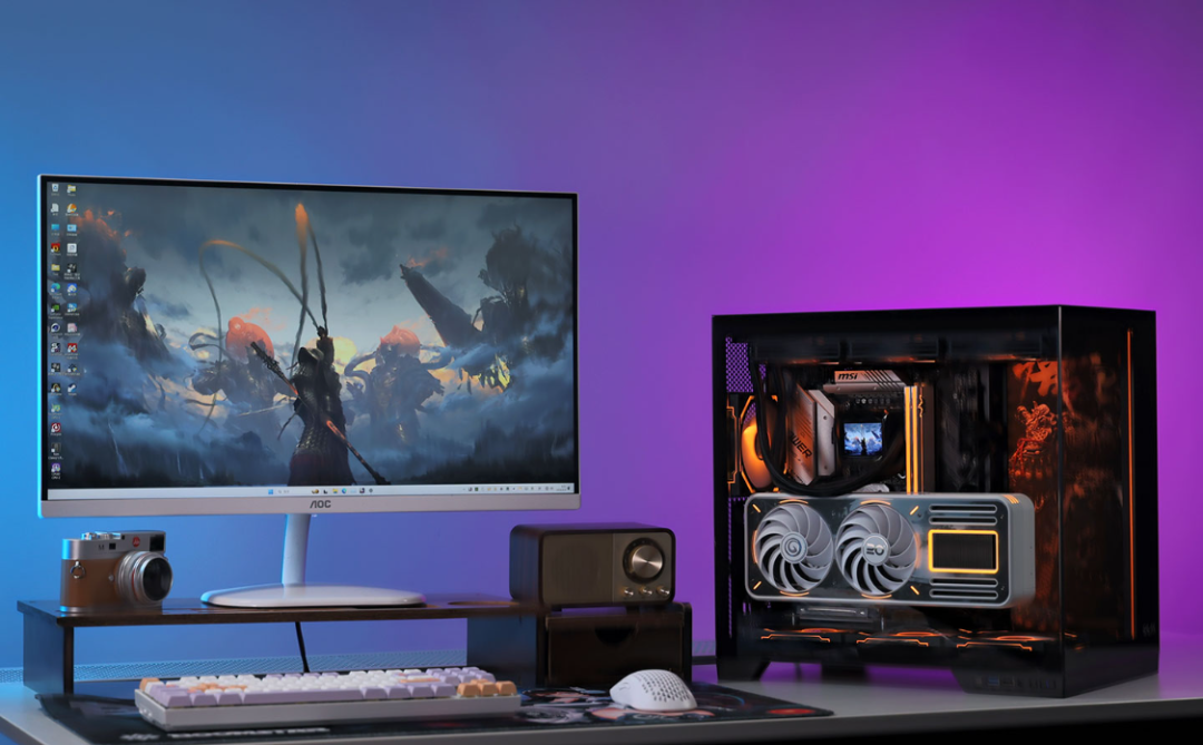 整機配置方面,14代i7搭配4070Tis也不存在明顯短板,但如果可以追求性價比,板U都降一檔再搭配這個顯卡,也會是不錯的選擇。黑悟空遊戲中,雖然做不到4K分辨率下全部拉滿的極致體驗,但整體表現依然足夠亮眼。而在其他遊戲大作中,上文配置基本都可以輕鬆拿捏。聯名顯卡+黑色海景房+定製ARGB燈板,整機顏值表現也足夠優秀。
