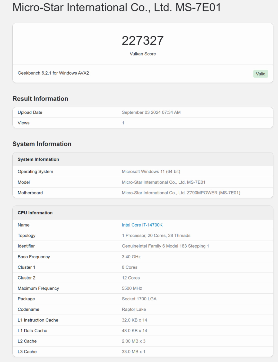 而在最新版的GeekBench 6顯卡測試中,在OpenCL測試中,顯卡得分233891分。在Vulkan測試中,顯卡得分227327分;