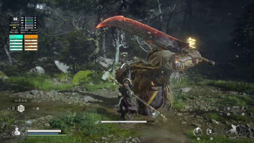 在與BOSS:寅虎戰鬥的過程中,遊戲實際幀數爲50幀左右,大部分時間都保持在55FPS左右;