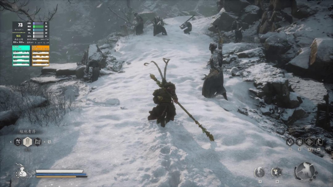將遊戲畫質保持不變,將超採樣清晰度設爲50後,進入遊戲進行實際遊玩體驗,分別在翠竹林-白霧澤、雪山徑-披霜道、小西天-快活林以及如意畫卷四張地圖中,進行跑圖測試,遊戲實際幀數爲60幀左右,大部分時間都保持在65幀以上;