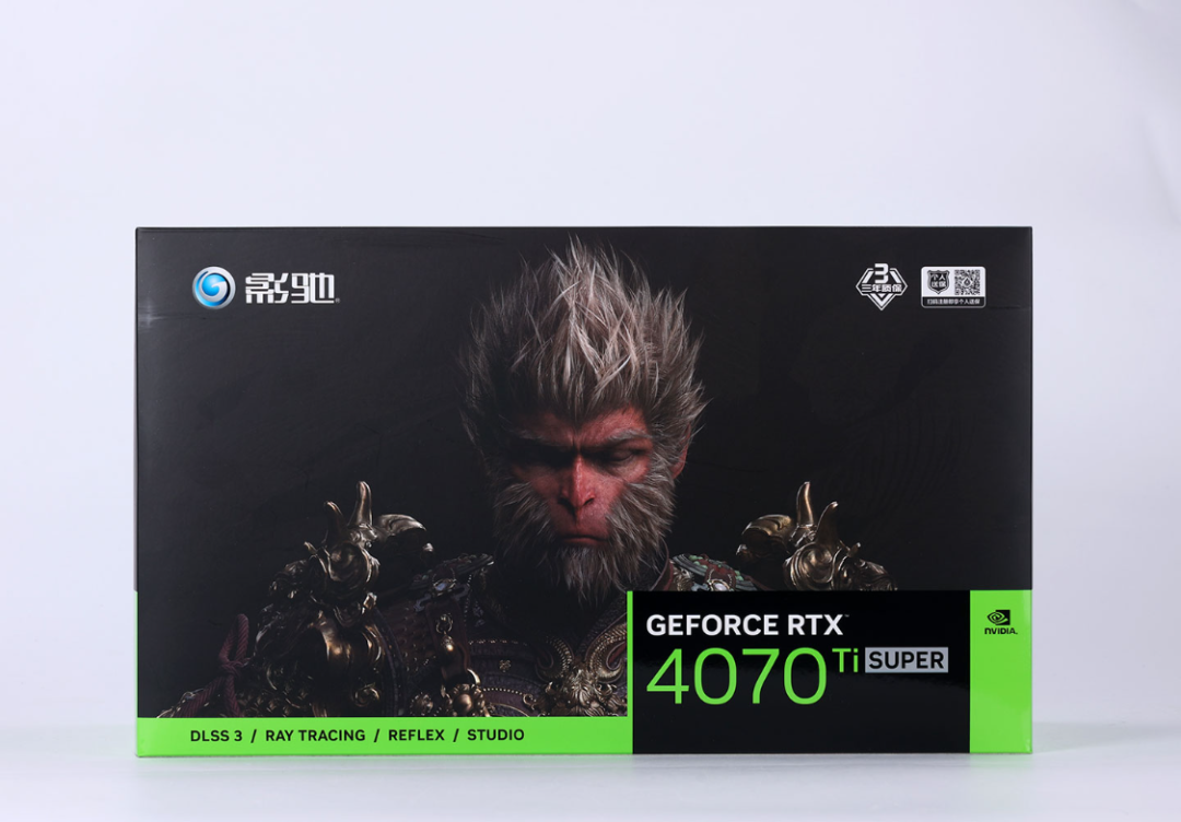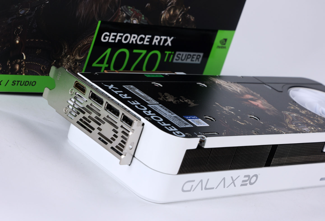 特別紀念版的影馳4070Ti S顯卡,外包相對方正厚重,有大面積的黑神話悟空遊戲元素設計。