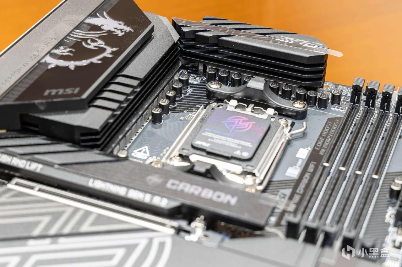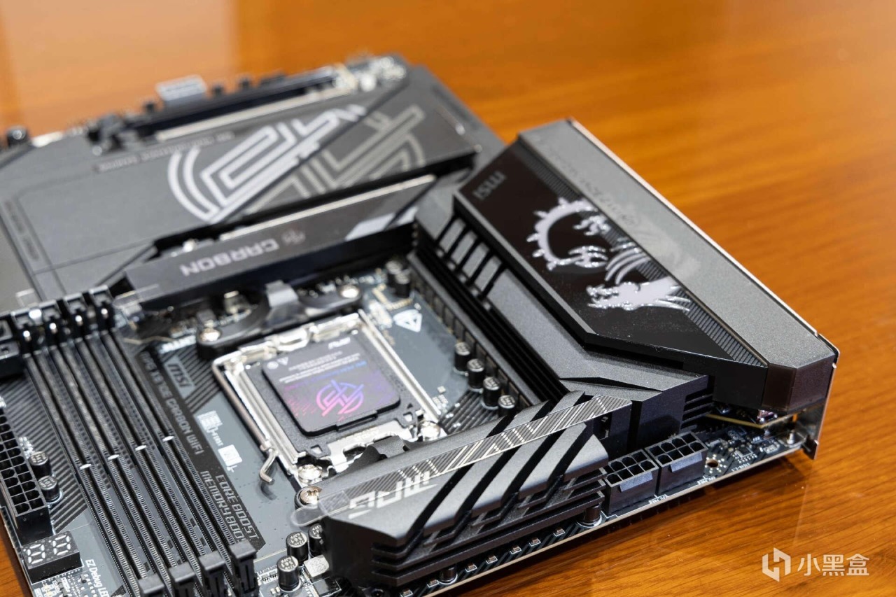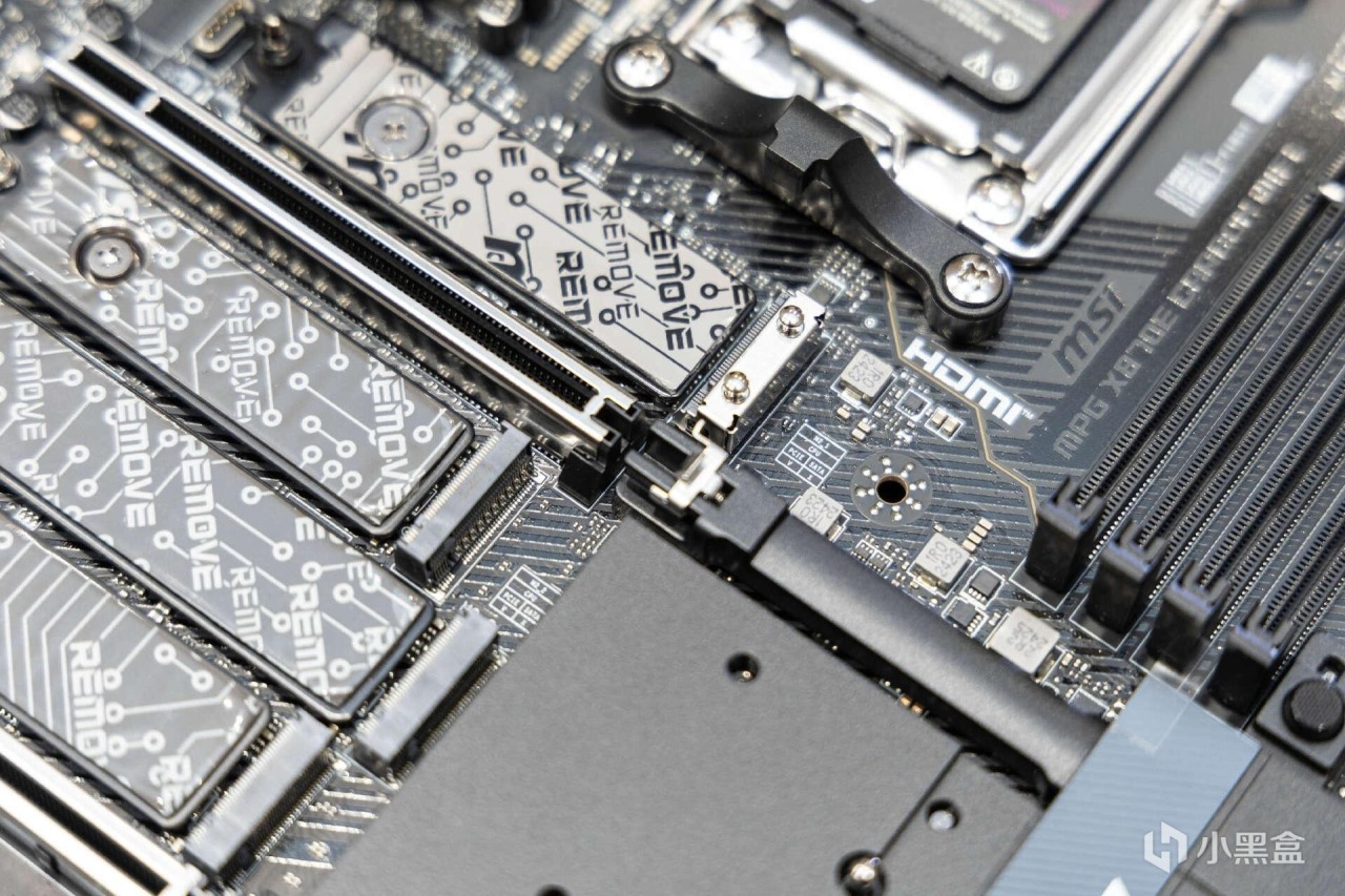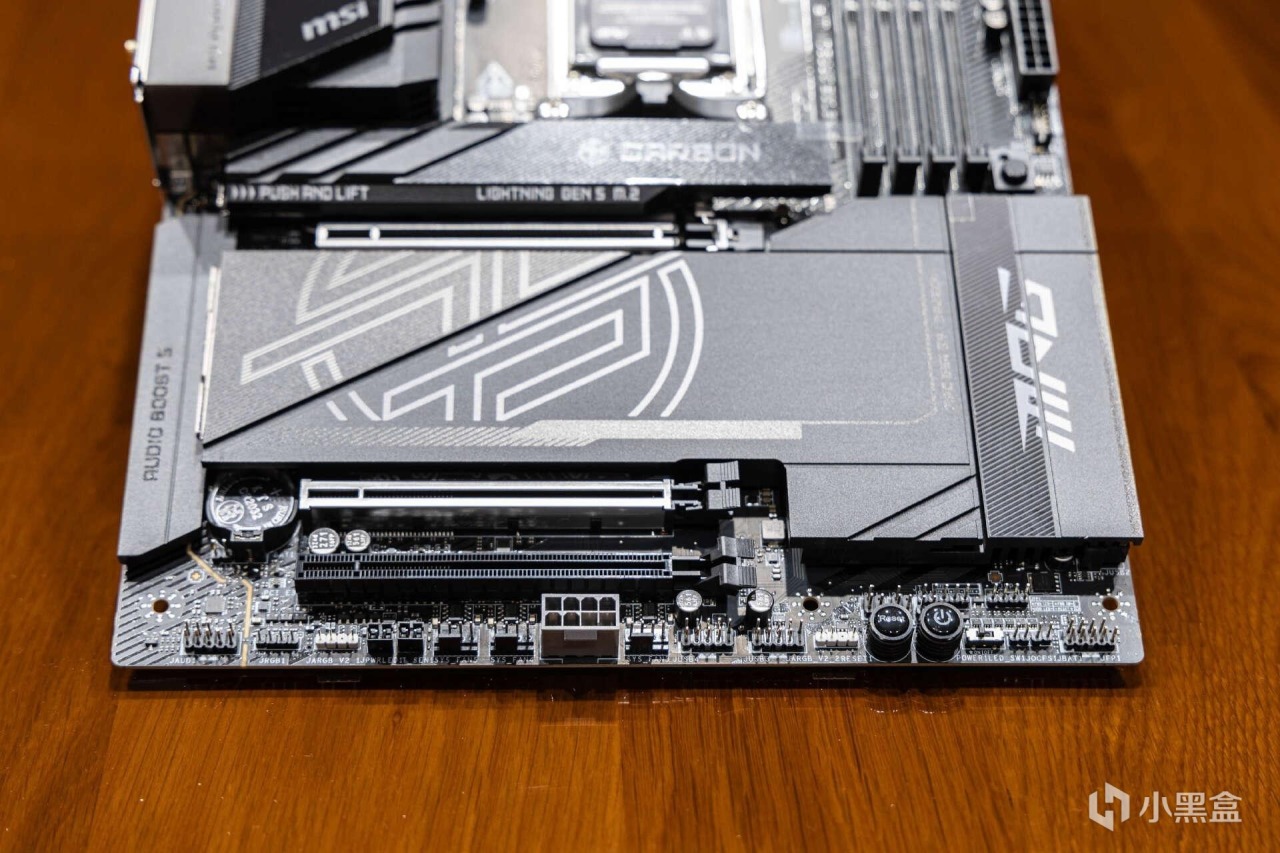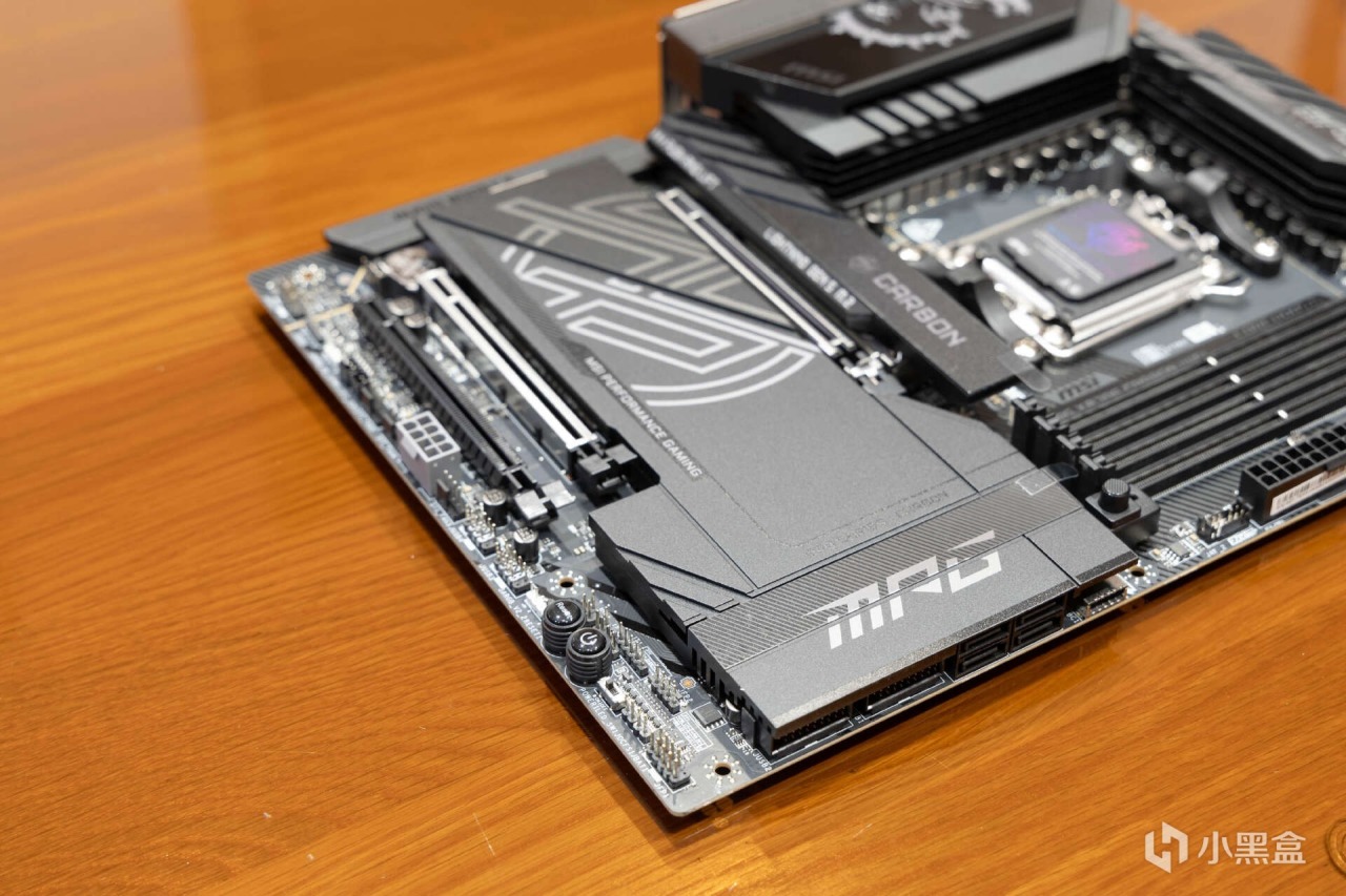 微星MPG X870E CARBON WIFI的M.2冰霜鎧甲和南橋散熱完美銜接,整體性更強,也更顯高級感。