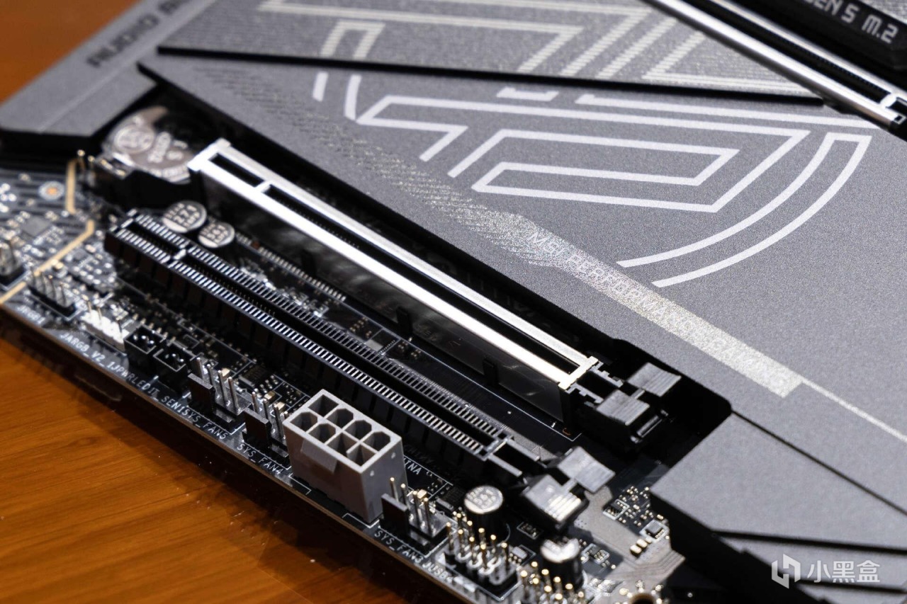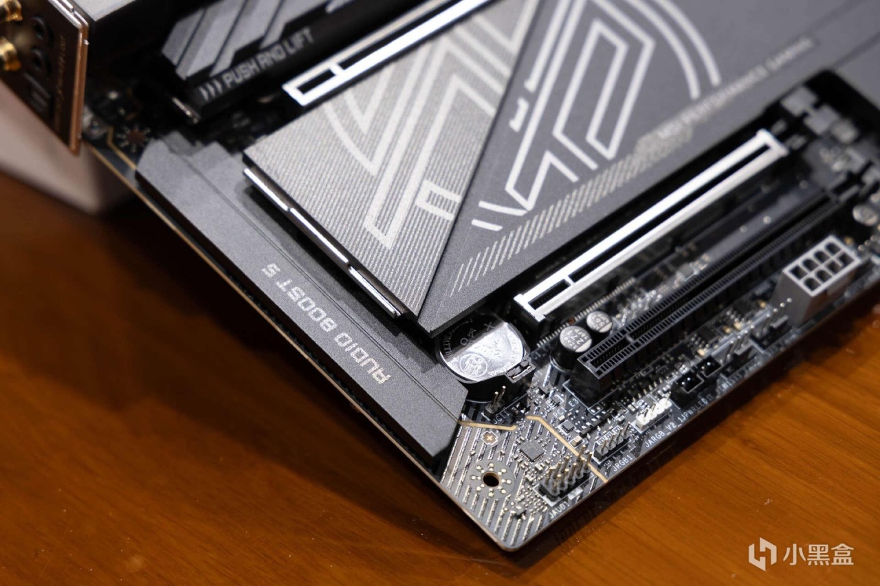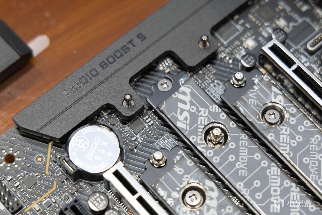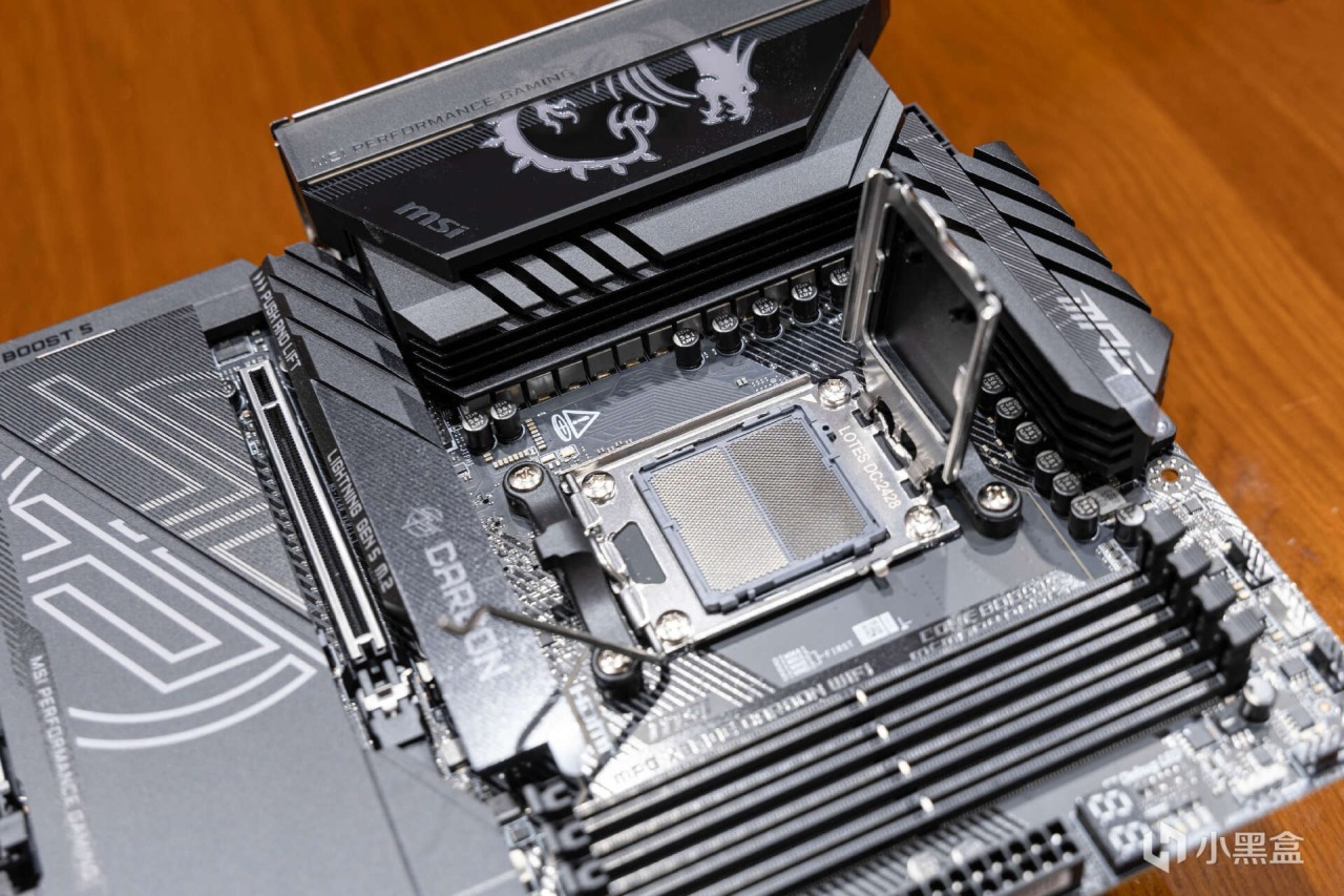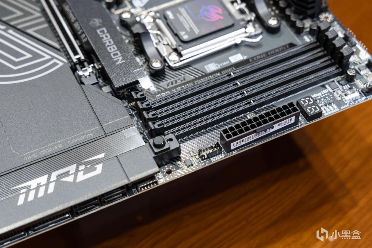 微星MPG X870E CARBON WIFI的M.2冰霜鎧甲和南橋散熱完美銜接,整體性更強,也更顯高級感。