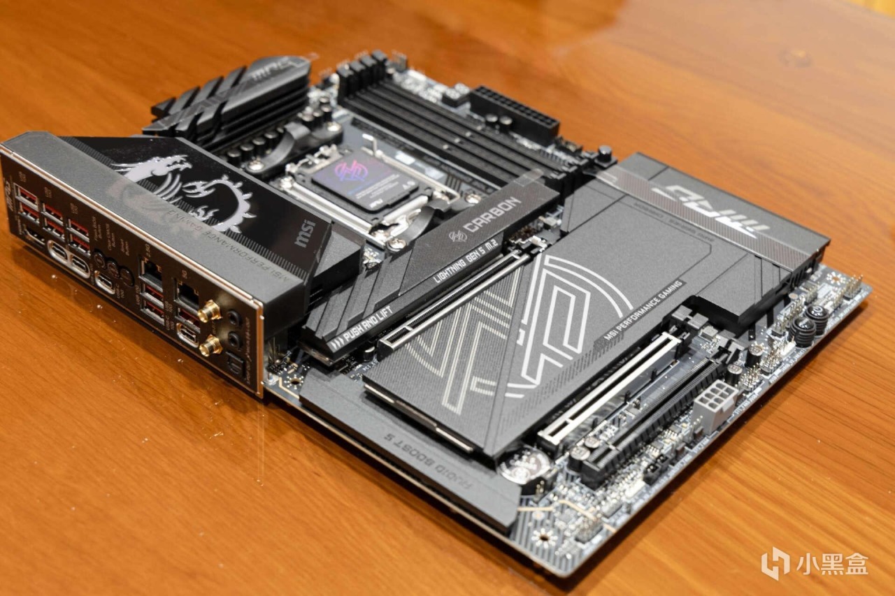 微星MPG X870E CARBON WIFI支持新一代基於 Zen 5 架構的 Ryzen 9000 系列處理器,具備誇張的18+2+1智能供電 ,最先進的DDR5內存與微星Memory Boost技術,全新的顯卡快拆設計,第2代免螺絲M.2冰霜鎧甲,Lightning USB 40G接口,WIFI7以及5G+2.5G雙有線網絡方案等一系列強大配置,在設計和堆料方面都相當豪華。