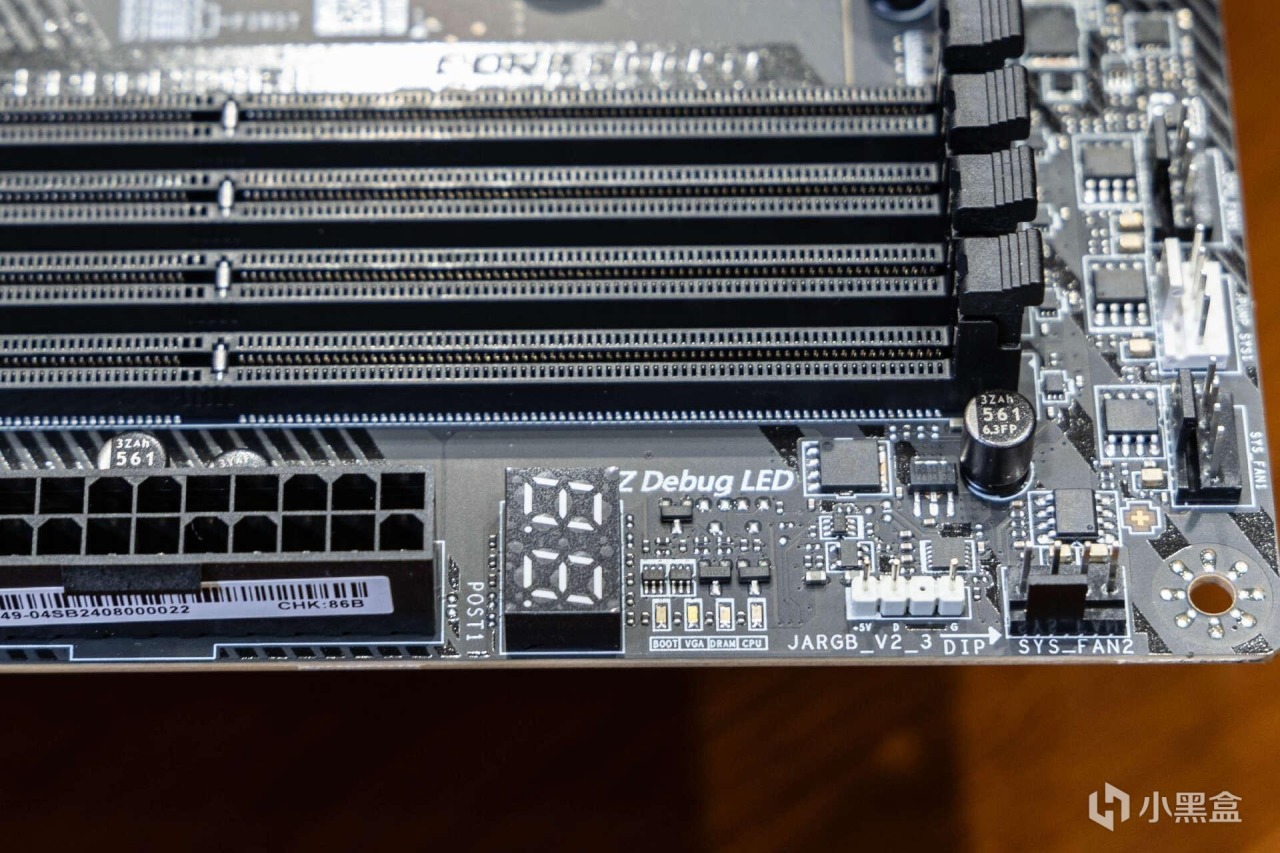 24PIN供電接口附近,除了常規的4LED DEBUG燈外,還提供了數字糾錯指示燈,幫助玩家更爲直觀的排除故障。