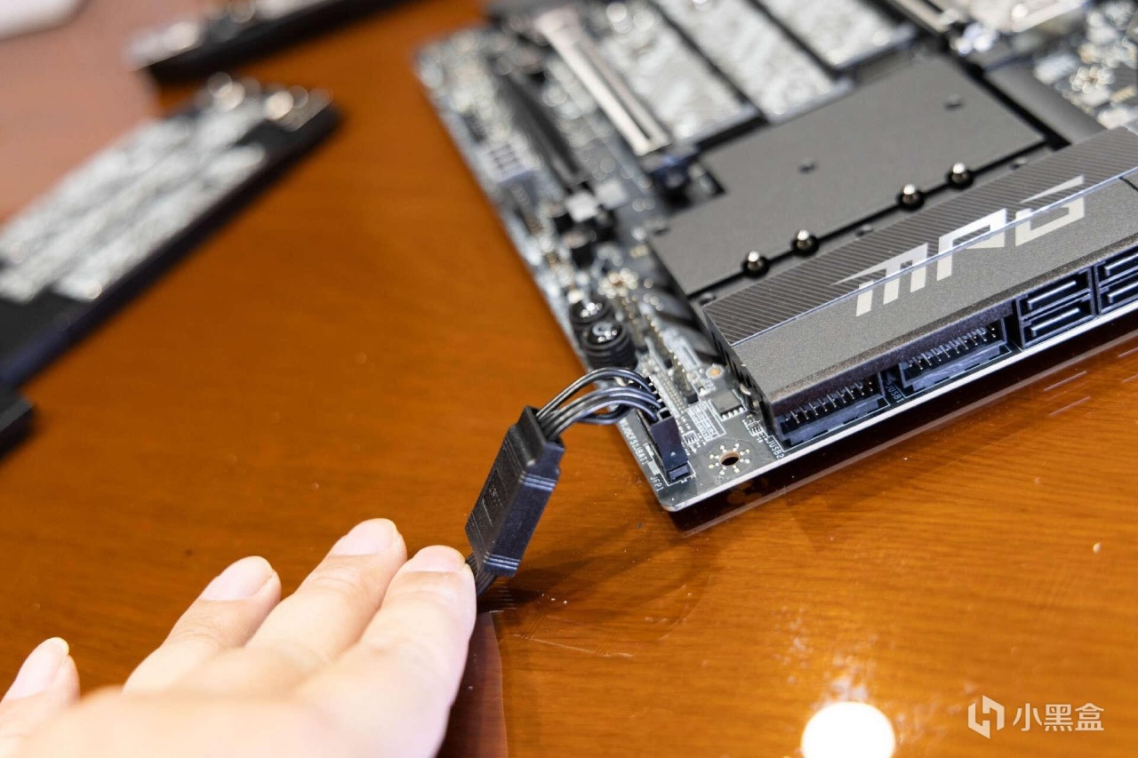 在24PIN供電接口的左側,可以看到一個全新的JAF_2接口。這是微星爲了適配自家高端散熱器預留的,可以一次性滿足散熱器供電,ARGB燈效,數據傳輸的需求,讓安裝佈線更爲簡潔輕鬆。