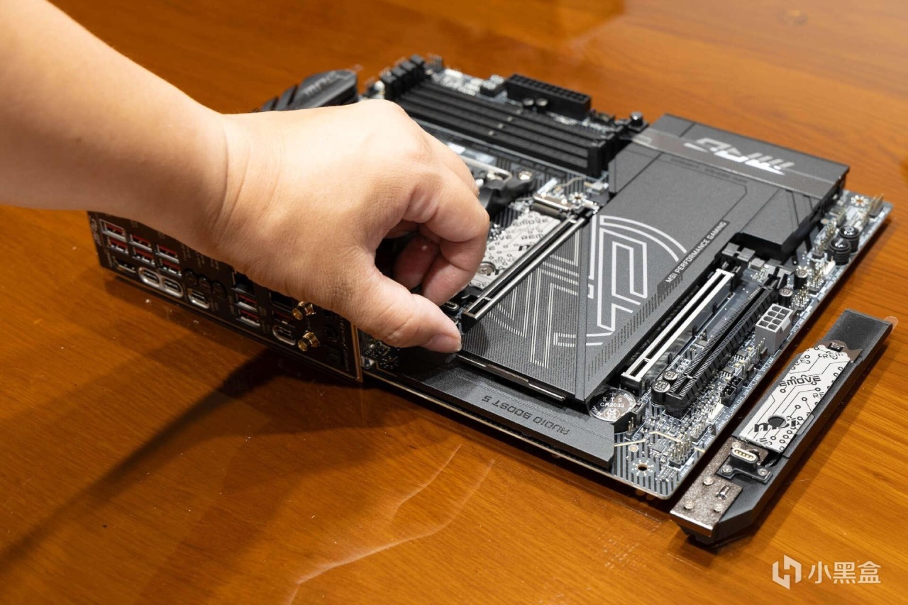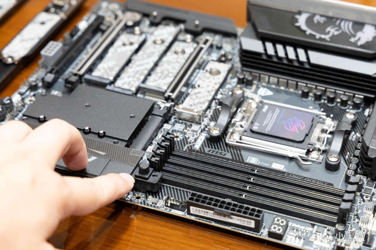 4 個 M.2 盤位均配有 EZ M.2 Clip II 無螺絲免工具卡扣,按下裝甲頂部的卡扣就能輕鬆取下散熱裝甲。