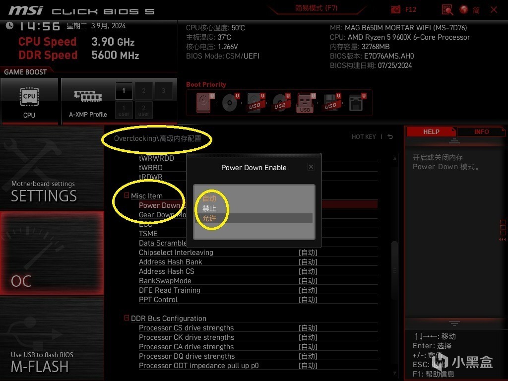 然后我们修改设置,就是启用内存MCR和内存POWER DOWN两个项目后,再来看看。