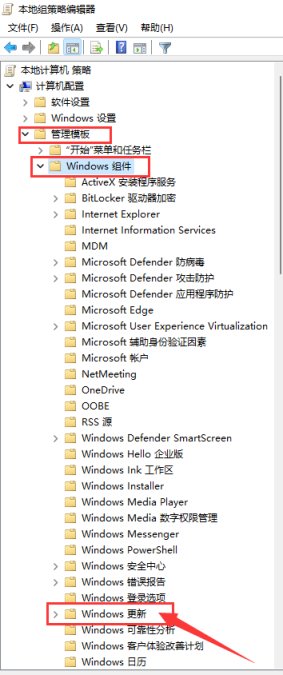 找到Windows更新依次打开图中红框