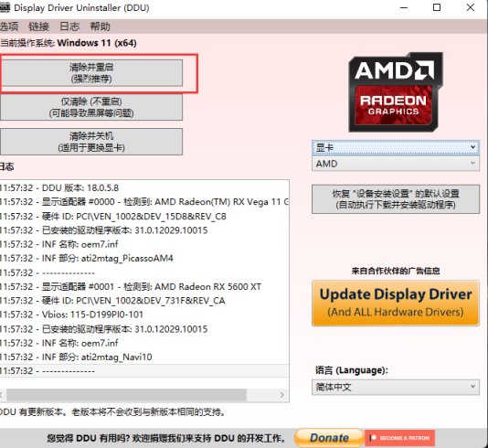 然后使用ddu卸载当前的驱动(下载百度解决一切)