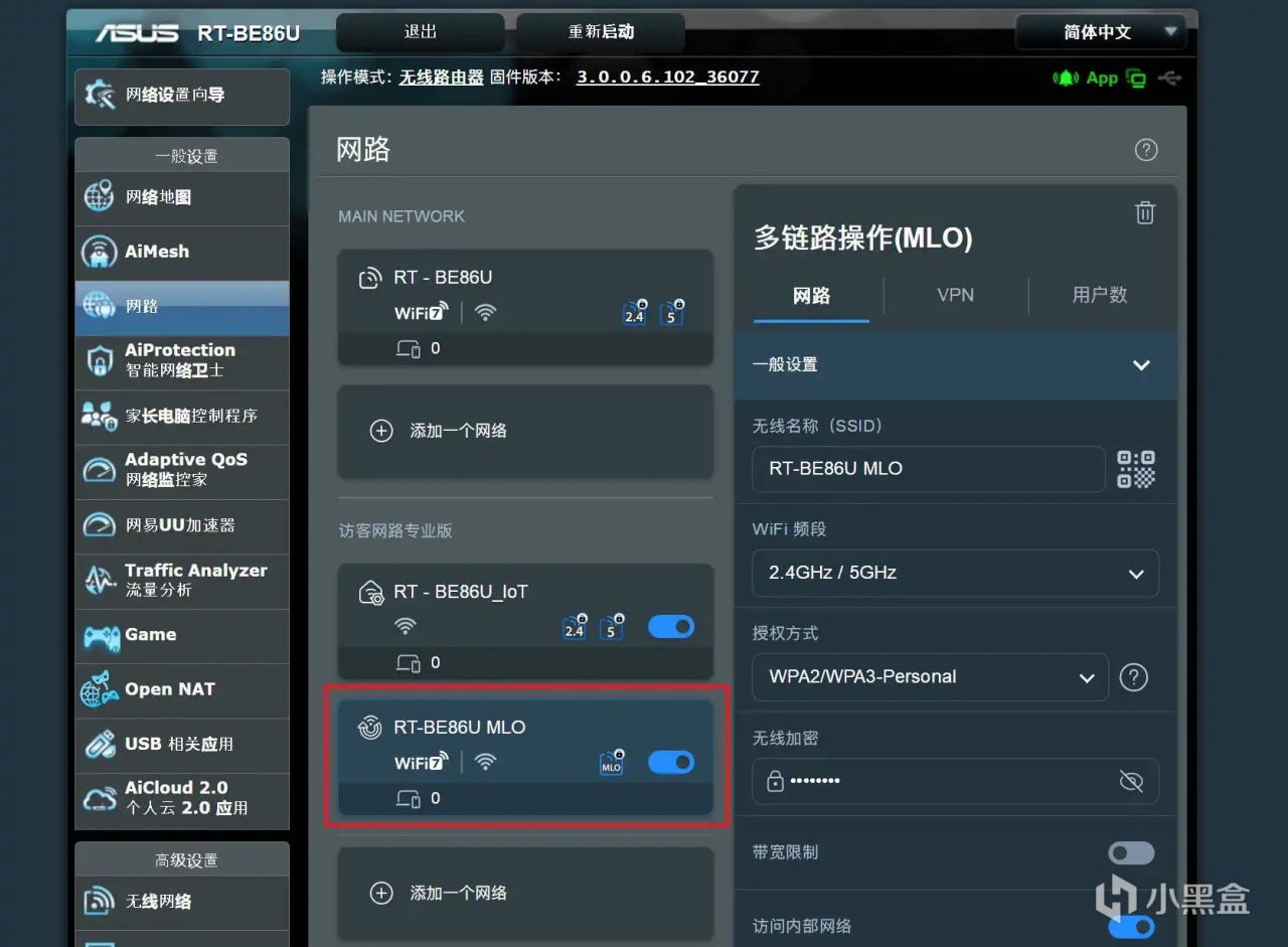 ▼需要注意的是,路由器初始階段如果沒有選擇開啓 MLO,那麼記得在這裏重新設置下,後面帶有 MLO 字樣的就是