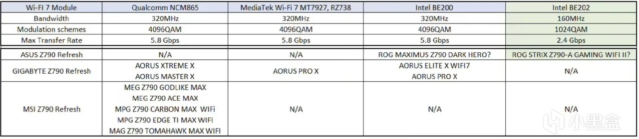 附上主流 WiFi7 網卡性能參數以及搭載的主板