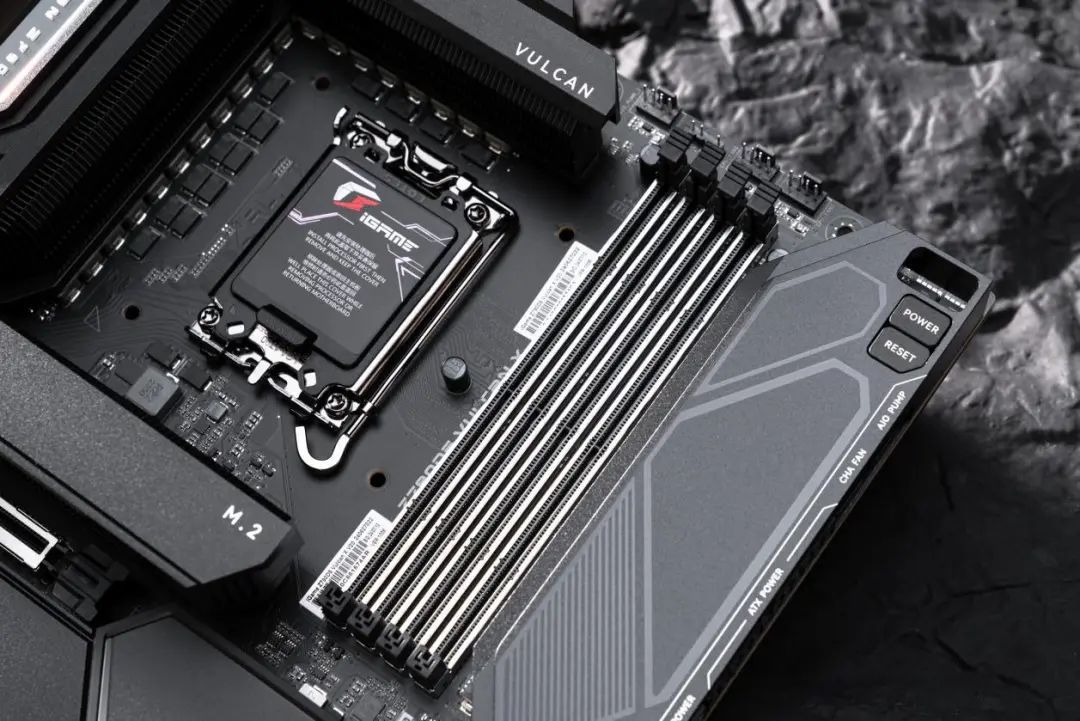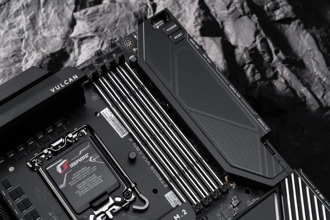 即便可以说是阅Z790无数,但iGame Z790火神依然做到了让笔者有眼前一亮的感觉。iGame Z790火神这款产品确实各个方面都做的相当的出色:充满了赛博科技感和炫酷灯效的外观设计,极具辨识度和游戏范。奢华的19+1+1相105A DrMOS供电设计,轻松支持13代/14代酷睿旗舰型号的稳定运行,经过优化的DDR5内存插槽,轻松支持8000MT/s及更高的频率,对高端内存的支持也相当不错。
