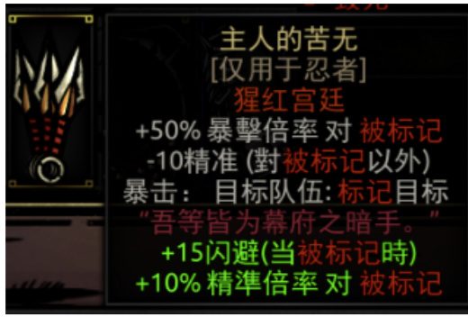 对流血+50%伤害,对腐蚀+50%伤害,对标记+50%伤害,对眩晕+1000%暴击