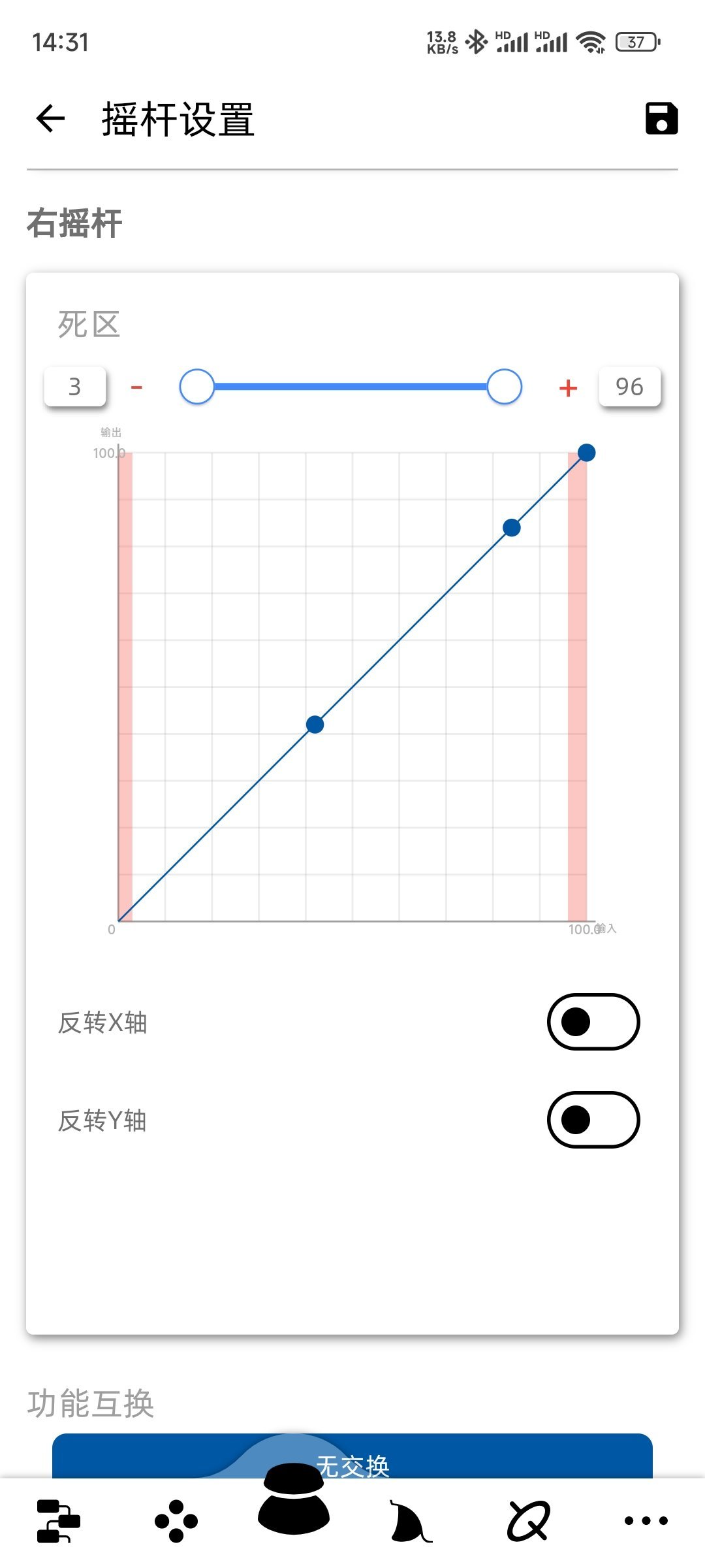 其实到这里,我个人感觉就挺震撼了。更没想到的是,他居然还支持体感跟APP调节功能。因为手柄支持PC、switch安卓跟iOS系统使用,当切换到switch使用时,有体感的手柄体验会好上不少。在APP中,手柄可设置的选项也非常多,除了开关摇杆跟扳机的死区,摇杆曲线,按键映射、宏功能、马达振动强度等都可自定义设置,可玩性很强。