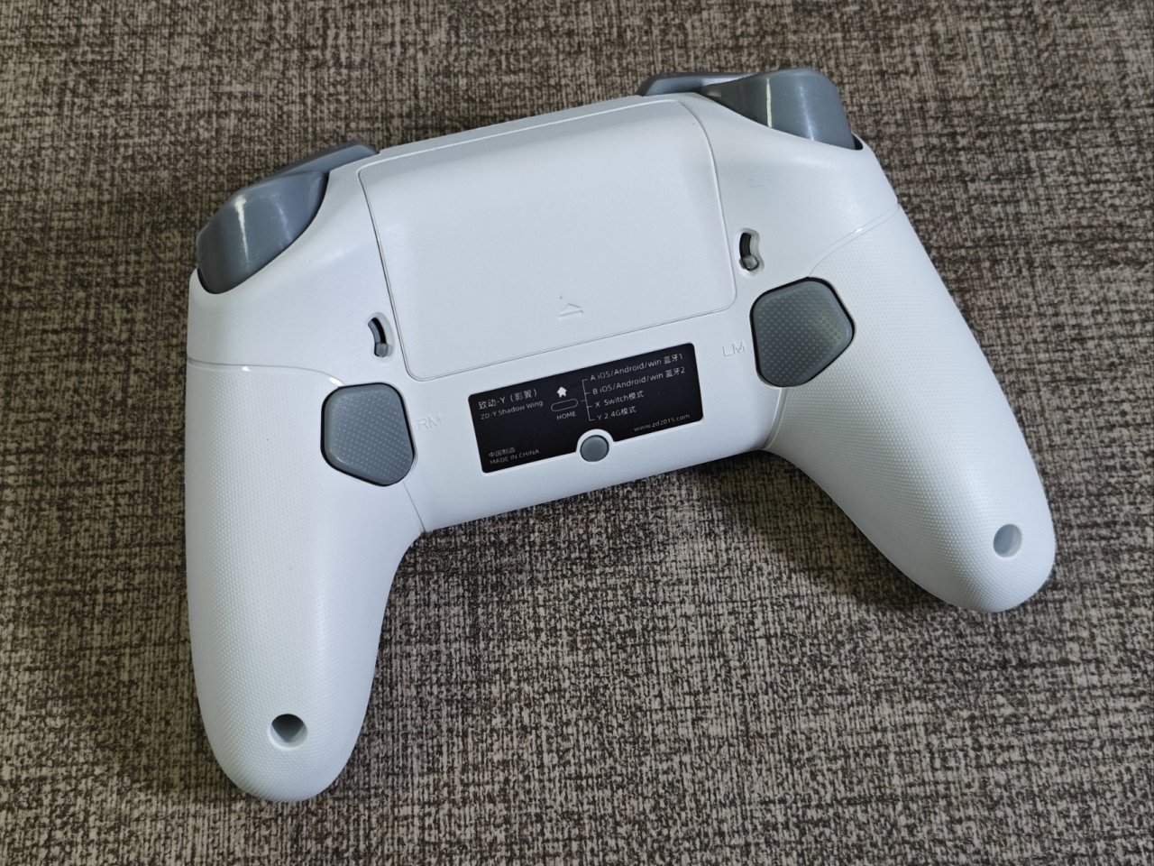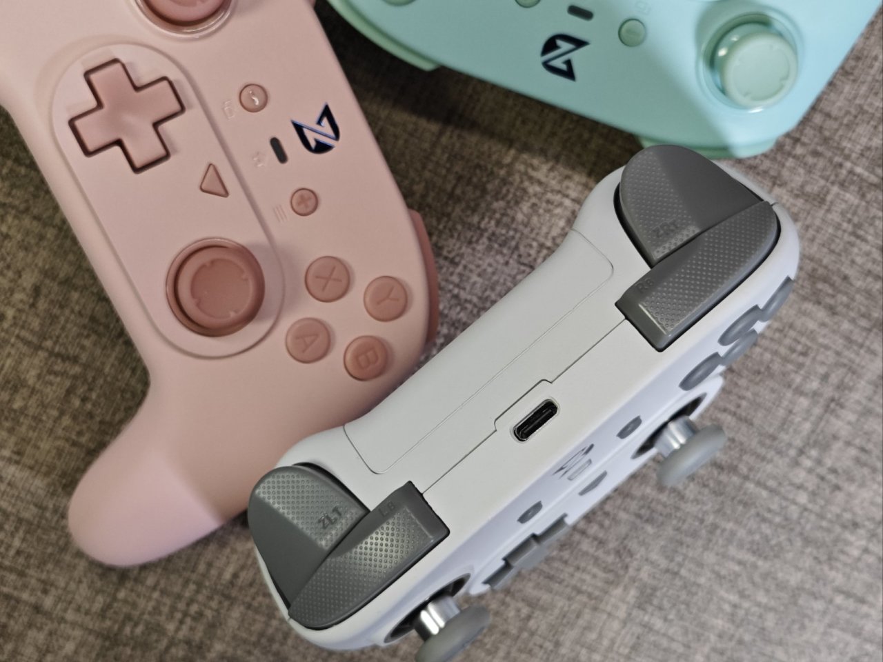 来到手柄肩部,居中位置为typeC的充电口,它的间件类型为轻触开关,听说是与传奇一样的架构,可惜我并未拿到传奇的样机,所以无从比较。但是个人感觉肩键是影翼手柄的薄弱之处,他的按键一致性比较差,按键偏硬,按久了感觉有点累,但是考虑到它的价格确实有点吹毛求疵了。
