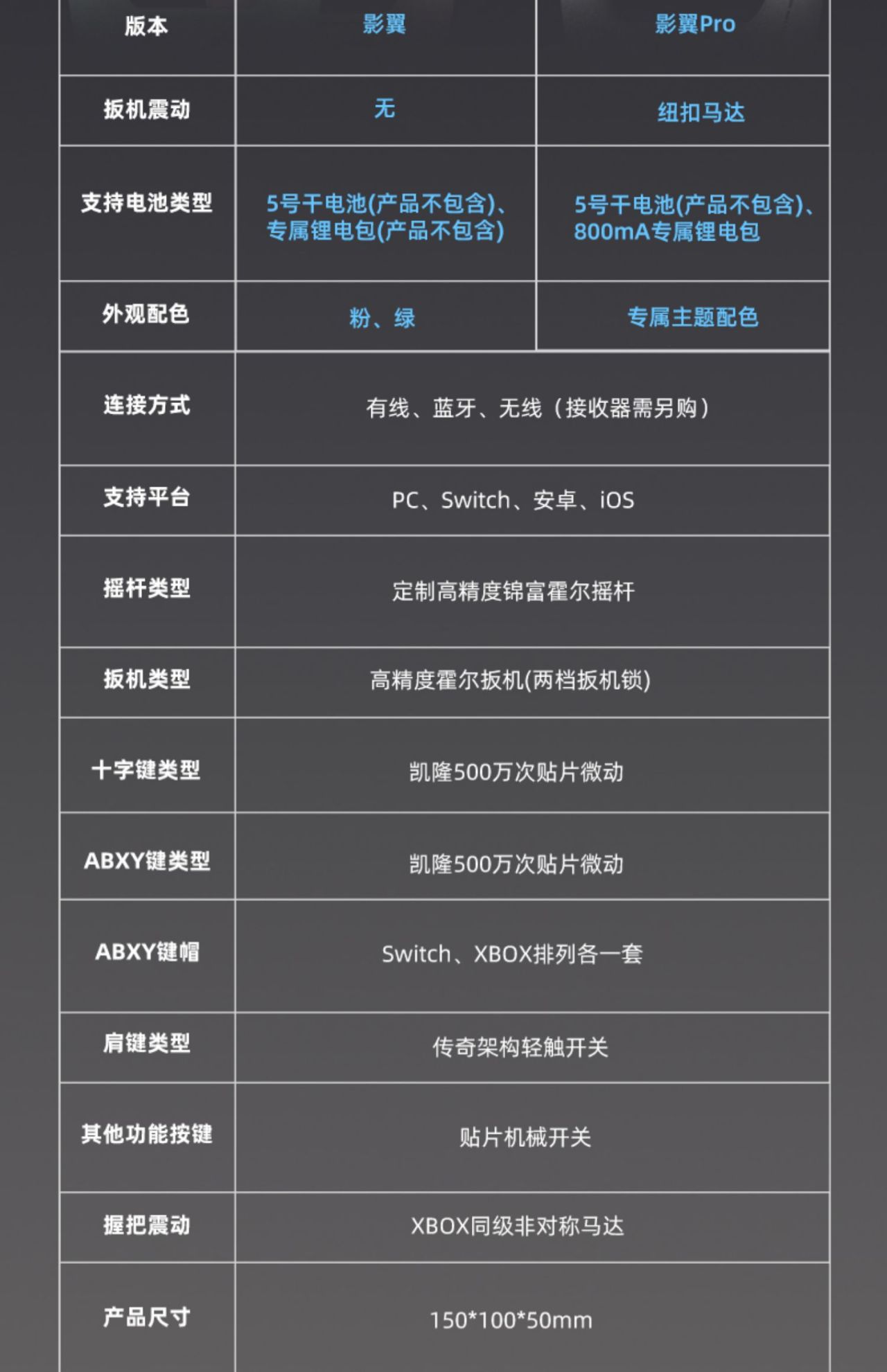 从收到产品开始,我已经使用了半个月的时间,这亦是我今年体验到的手柄当中,性价比最高的一款。不计成本的堆料成就了这么一个超级卷王。目前手柄售价为:标准版99.9,Pro版149.9。具体区别如下图所示,大家可以根据预算选择购买。我是骑猫,让我们下期再见!