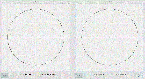 由于影翼支持无死区模式,所以我分别在有死区跟无死区模式下,对摇杆的外圈进行测试,如下图所示,左摇杆为无死区模式,右摇杆为正常模式。无使驱模式下摇杆的调节偏向椭圆,而普通模式下,遥感外圈偏向于八边形。
