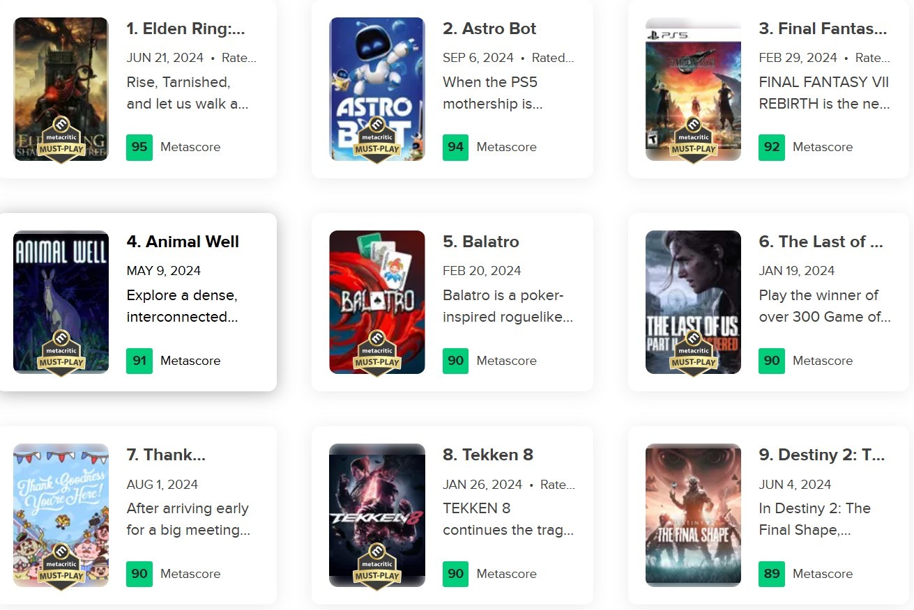 宇宙机器人目前是M站上2024 年评分第二高的游戏