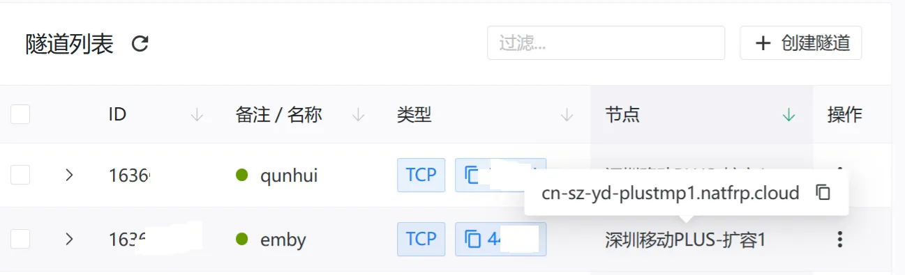 来到SakuraFRP后台,根据下图格式创建一个隧道,现在我们没有开放80/443端口的需求(要备案的/(ㄒoㄒ)/~~),所以可以不选带有“建站”标签的节点。