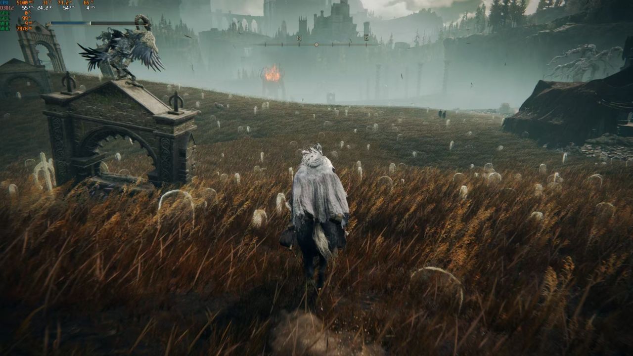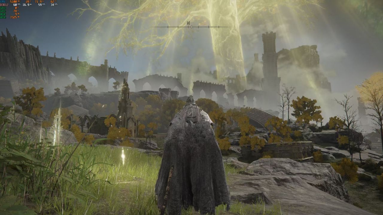 这次测试的显示器是4K60HZ的,但为了更顺畅的游戏体验,建议降到2K或者1080P来玩。DLC一发布我就更新了《艾尔登法环:黄金树幽影》,刚进游戏就被美术效果惊艳到了,新地图的景色真是让人震撼。