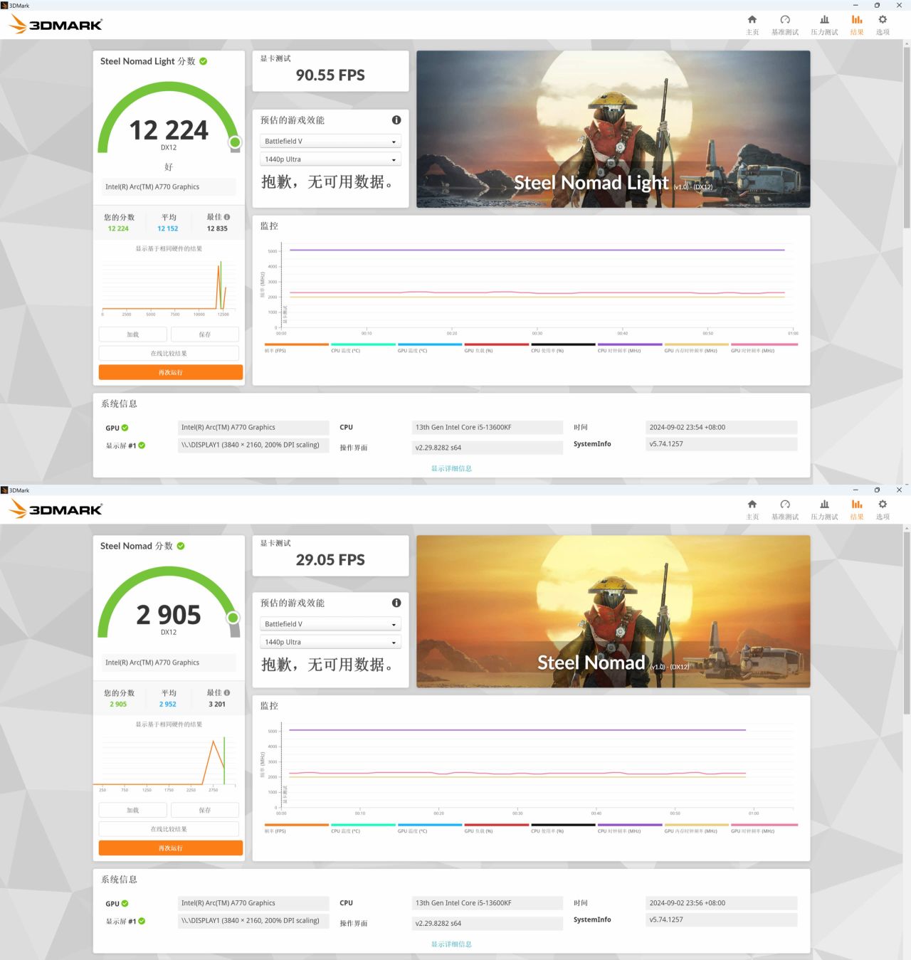 Steel Nomad Light 分数:12224,Steel Nomad 分数:2905。