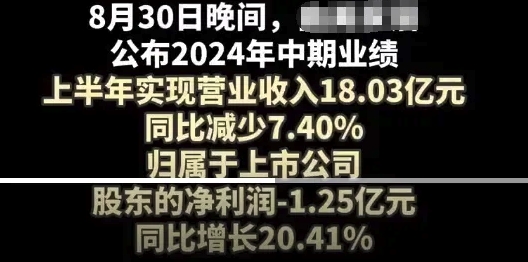 而根据8月底该企业公布的2024年中期业绩显示,上半年实现营业收入同比减少7.40%;归属于上市公司股东的净利润-1.25亿元。