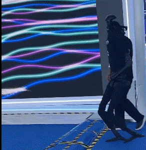 近日,贵州贵阳,数博会上,机器人走路被地面凸起绊到,脚下打滑还把毯子戳个洞。(图片来源:@华龙网)