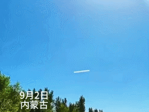 9月2日,内蒙古,天空出现奇怪物体,像块胶布贴在天空一动不动,引发网友围观。(图片来源:@新闻夜航)