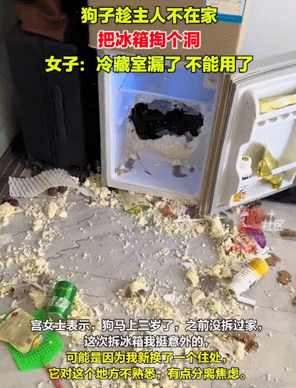 “之前从没拆过家”!3岁狗子分离焦虑把冰箱掏出大洞