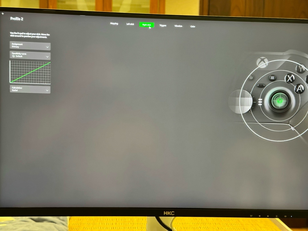 插上电脑,打开xbox配件工具,可以正常识别,识别为精英二代。相比xbox普通版手柄,固件里可以设置的东西很多,摇杆曲线、扳机死区、震动强度以及xbox键灯光的颜色。摇杆曲线这个功能挺好的,玩fps用的到,不过曲线不能自定义,只能用固件提供的模式。