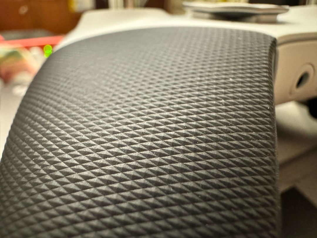手柄颜值果然高,但是手柄腿儿外层是橡胶,而且还是最能藏污纳垢的密集颗粒。我手汗严重,用一段时间大概率会臭。手感表面用磨砂塑料,摸起来手感很好,然而手垢会粘在上面,得用纸巾才擦得掉。