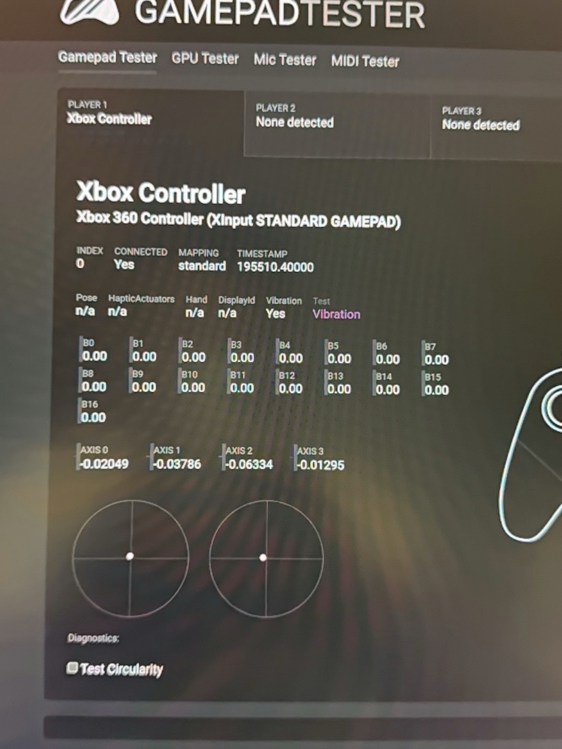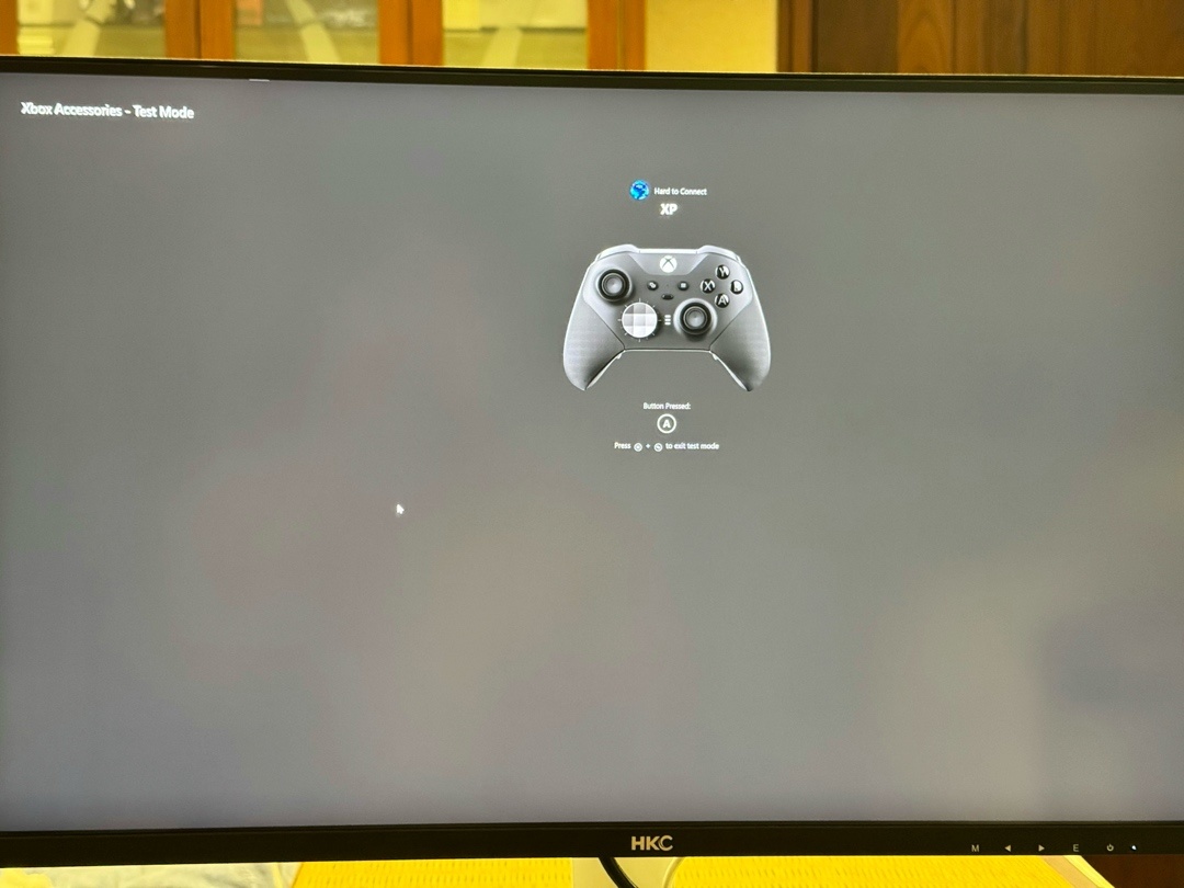 进入测试模式测试一下按键,着重测试A键。只要按实一点就能触发,轻轻按压下去的话,有几率没反应。这个情况跟我的xsx手柄类似,但是精英的情况好一点,只要按实一点就没问题,xsx需要有意的用点力才能触发。其他按键则全部正常。然后我测了一下回正误差,摇杆拨到最边缘后放手,误差有百分之五、六左右。因为摇杆是全金属的,回正时有惯性,所以误差会大一点。