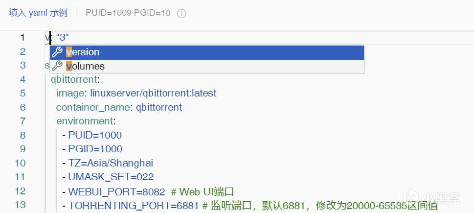 常用关键字输入时会自动补全,比如开头的version字段,输入v,便会出现完整的关键字。可以直接回车或鼠标点击,即可自动补全。