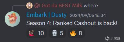 9月5日Oscar在进行官方社区直播中宣布,第4赛季排位赛模式将会回归到经典的提现模式,而不是终端争夺,各位TFByds终于可以不用再忍受爆破模式的折磨了同时Dusty也在Discord中重申了这一重大决定