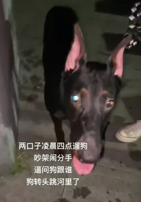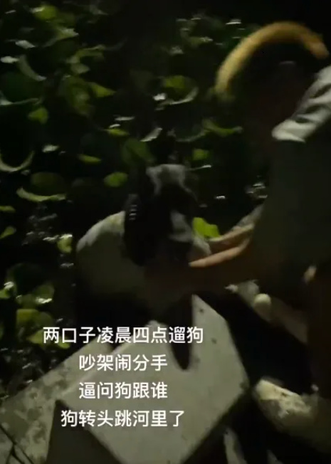 一对情侣凌晨遛狗时吵架闹分手,闹分手就算了,还逼问狗跟谁走。