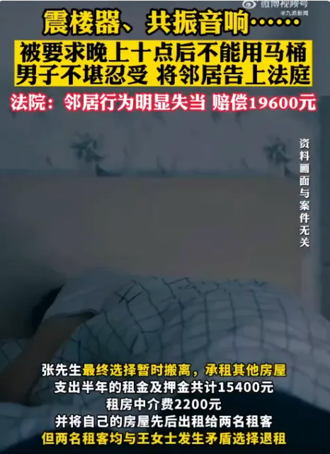 但王女士对如洗漱、瓶盖掉落、使用厕所等正常生活产生的声音很敏感,要求张先生在晚上十点后不能使用马桶,因问题未解决,遂采取震楼器、共振音响等方式,故意发出噪音反击张先生。