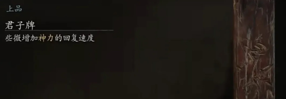 下一個是君子牌,它能幫我們提升神力的恢復速度,而且刷起來也比虎筋絛子要容易得多。