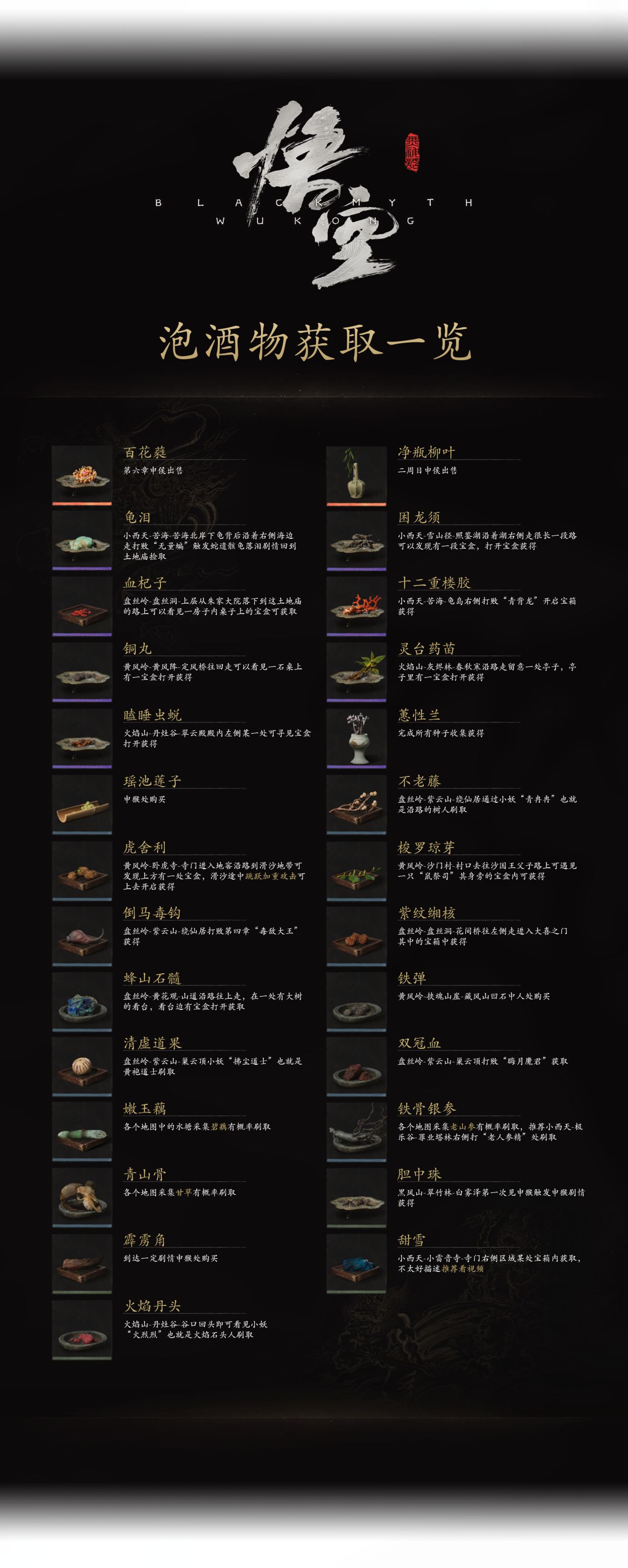 除了淨瓶柳葉需要二週目解鎖購買,這邊重點說下虎舍利,由於位置比較刁鑽自行尋找探索不容易找到,建議自行查找視頻,其餘需要採集的泡酒物也可搜索視頻尋找最佳採集路線。