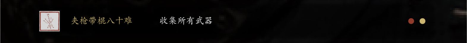 此成就需要解鎖製作過所有的武器,其中不包括豪華版贈送的武器所以我沒有列入。當中有三把武器需要二週目解鎖分別是天龍棍、混鐵棍、昆棍·通天,其相應的材龍珠、大力鐵角、通天角每週目獲取的數量都有限。龍珠一週目僅能獲得5個通過擊殺龍boss獲得,大力鐵角在第五章隱地圖中拾取1個打敗碧水金睛獸3個共4個,通天角通過打敗boss、蝜蝂、毒敵大王、百眼魔君獲得共3個。所以除了進入二週目解鎖外,還需要相對應的部分支線任務來獲得素材。