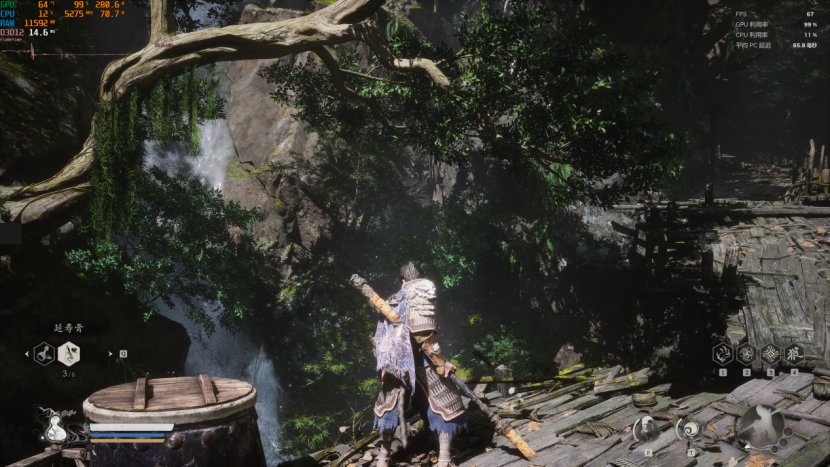 不过在第一章和第二章室外场景较多,树叶和草地密集的情况下,开启帧生成会造成画面闪烁,因此我推荐到第三章雪地和浮屠塔这种植被较少的再开启。