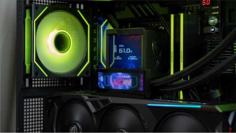此外这次iGame GeForce RTX 40系的火神随机附带了一个桌面屏幕支架,允许你将屏幕拿下来作为桌面监控屏使用。原本屏幕的位置七彩虹也准备了一块RGB装饰板,插上同步线后就可以和主板进行RGB灯光同步。