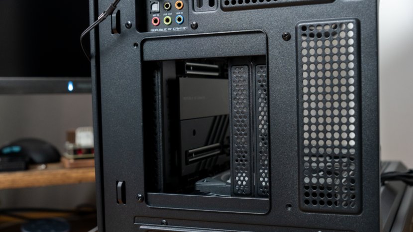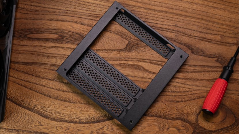 提到竖插,就不得不说一下这次选择星灿大岚的原因。以往机箱竖插都需要玩家另外付费购买单独的机箱竖插支架才能使用,但星灿岚尾部的PCIe挡板设计成了正方形,所以你只需要拧下四颗螺丝,将PCIe挡板卸下调转90°再装回去,即可完成竖插操作。