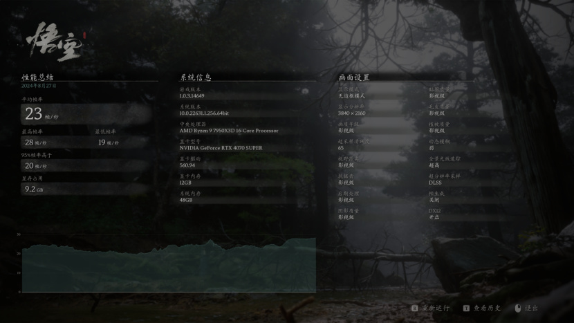 2K分辨率已经算我们挑战完成了,相信也有不少小伙伴用着GeForce RTX 4070 SUPER配4K屏幕,因此下一步我也尝试优化了一下4K画面设置。