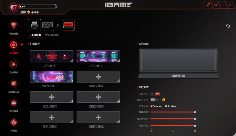 侧边则是七彩虹iGame Vulcan火神系列的磁吸小屏幕,这个设计从GeForce RTX 30系开始被玩家熟知,在GeForce RTX 40系上七彩虹将它延续了下来。