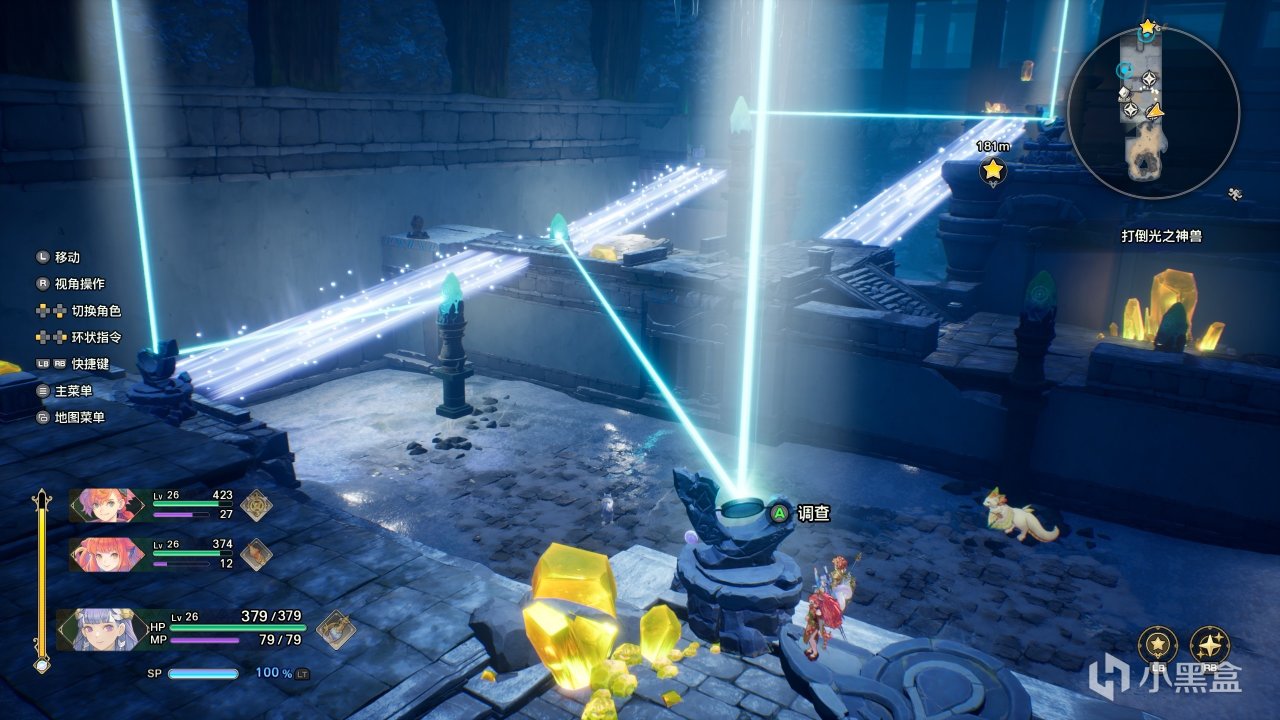當然,遊戲的部分地圖,包括暗元素長廊的鉤鎖能力、光元素的反射迷宮還有在第7章討伐神獸時月之神獸的時間倒流改變地形等地圖都讓人印象深刻,是可以點讚的設計。