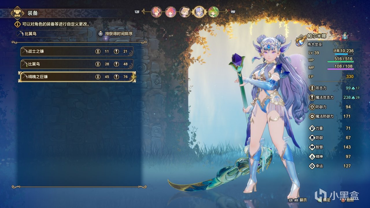 這個就是JRPG常見的到一個地方換一套,沒有太多需要講的,不過由於商人特別黑,賣價只有買價1/4,所以建議是隔次再更換裝備,不然就需要刷錢了——此外每個角色最強裝備都在隱藏區域,你看見一羣53&54級小怪,基本就是在守隱藏畢業裝了