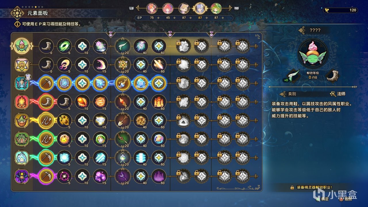 (1)精靈器的等級需要EP,EP只能升級或者地圖開精靈點來獲取,到通關只能點滿2-3個技能樹