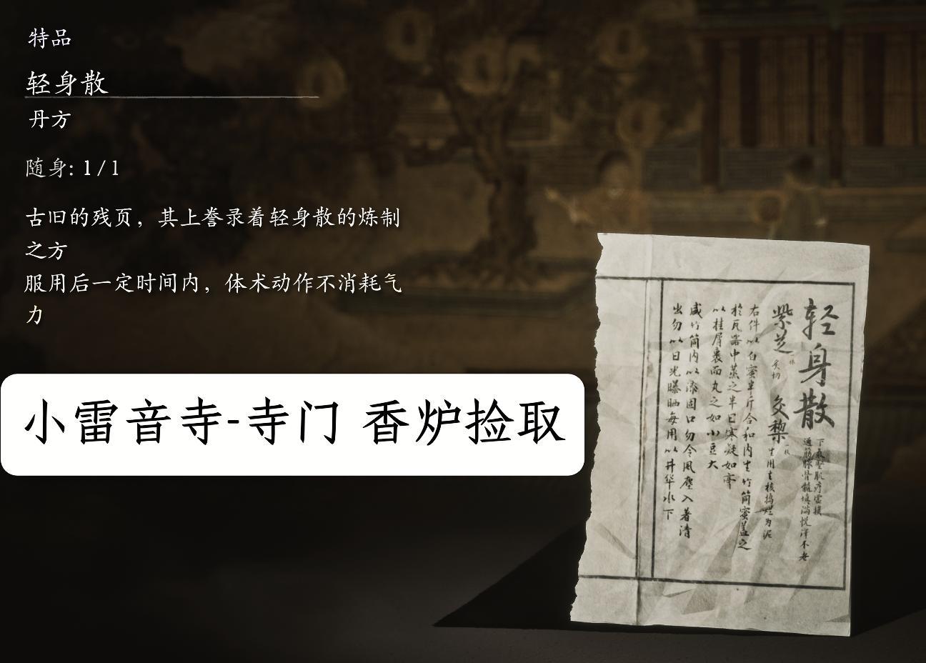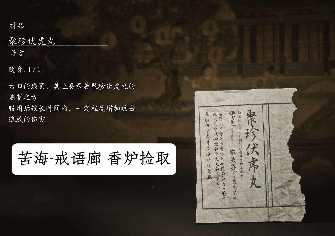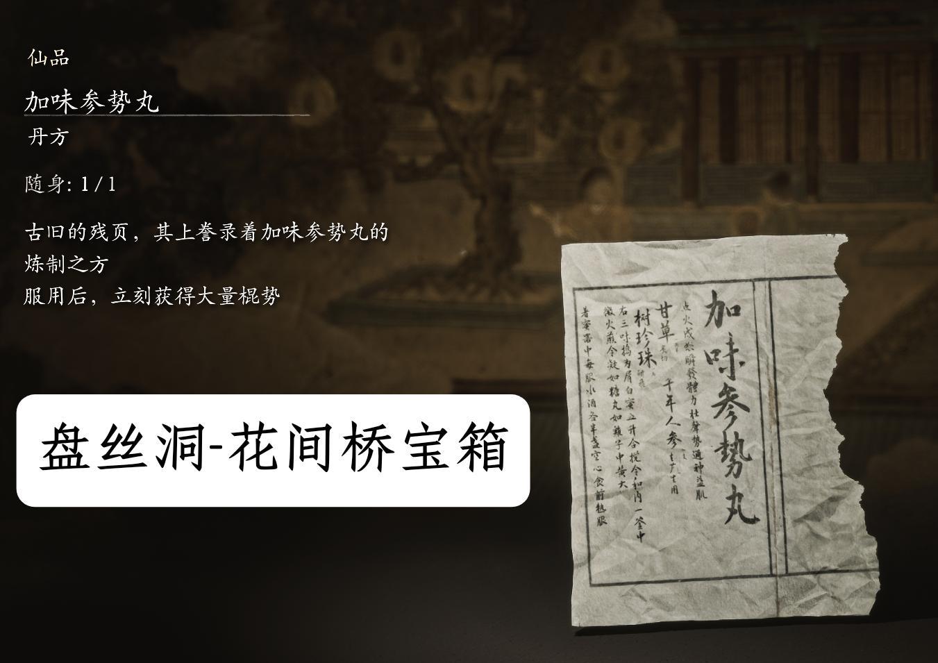 到燈籠處觸發四妹的劇情,過完劇情後進門,有一堆寶箱,打開寶箱獲取丹方