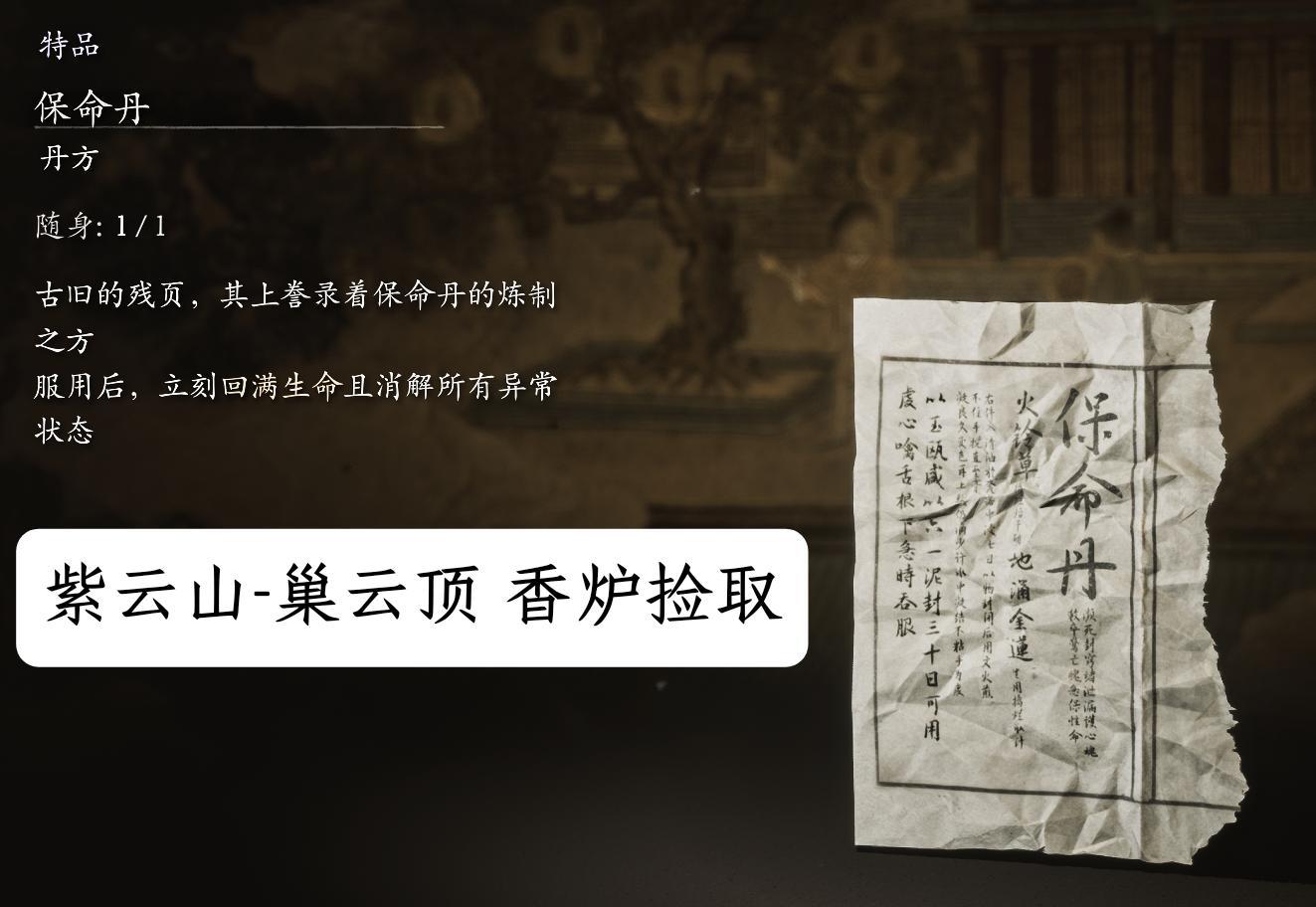 傳送到【巢雲頂】土地廟,然後右轉進門洞,直走盡頭,右側屏風後面獲取丹方